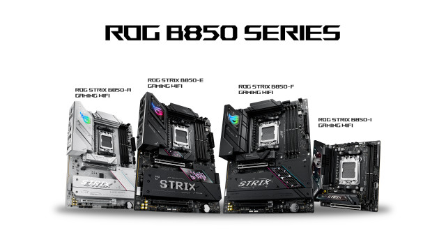 에이수스는 ROG Strix B850-E Gaming WiFi를 시작으로 ROG Strix B850-F Gaming WiFi, ROG Strix B850-A Gaming WiFi, ROG Strix B850-I Gaming WiFi, TUF Gaming B850-Plus WiFi, TUF Gaming B850M-Plus WiFi, TUF Gaming B850M-Plus를 출시한다.