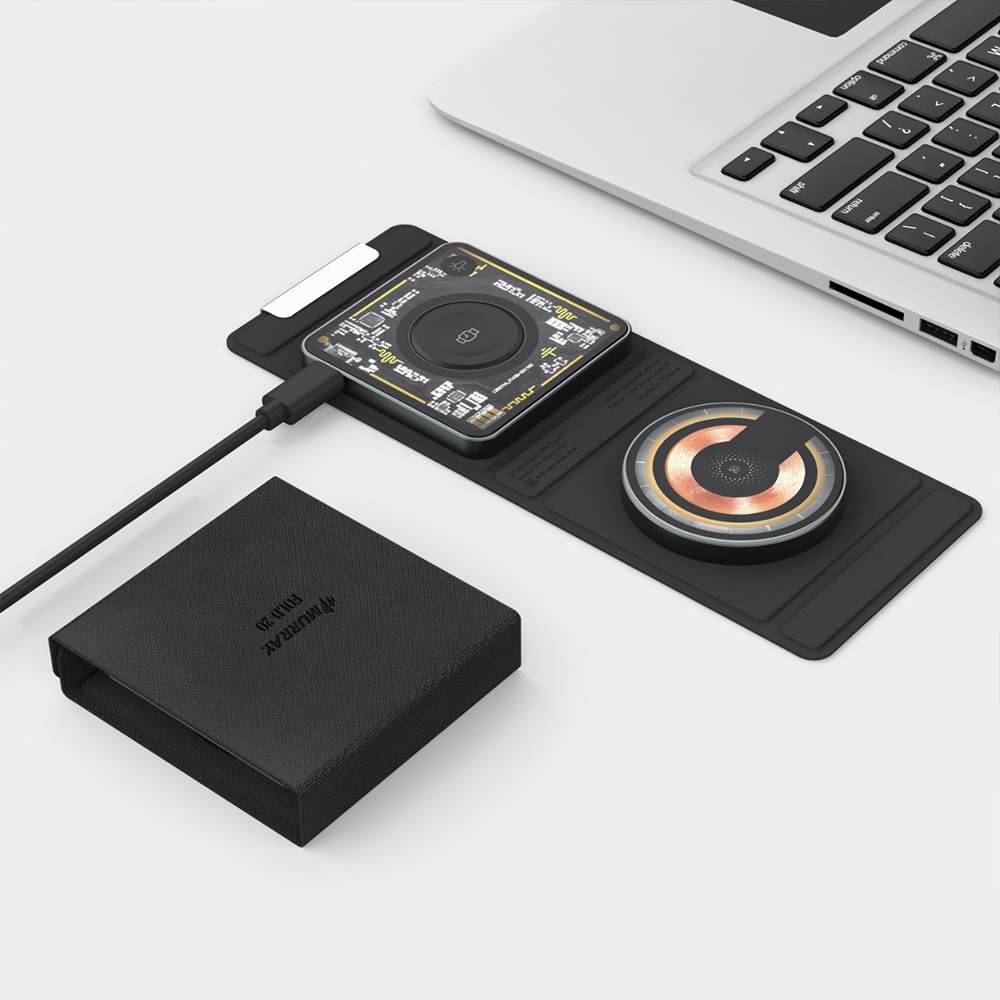 ‘머레이 지갑형폴더블 3in1 무선충전기 FOLD-20’은 스마트폰과 무선 이어폰 및 스마트워치를 모두 충전할 수 있어서 여행이나 출장 시 편리하다.